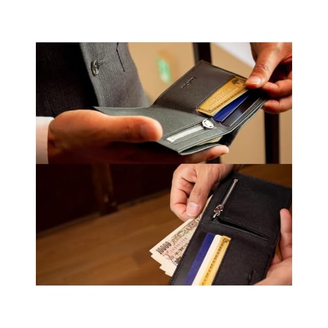 [Dom Teporna] 極薄 二つ折り財布 メンズ 薄い 牛革 レザー YKKファスナー シンプル お札入れ 小銭入れ カード入れ 薄型 財布 レディース ブラックグレー