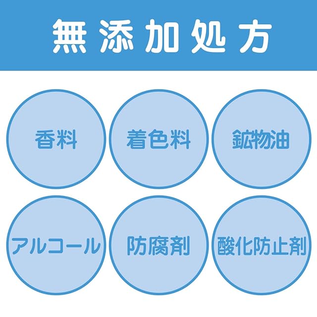 【6つの無添加で敏感肌の方にもおすすめ】本品は香料、着色料、アルコール、防腐剤、酸化防止剤、鉱物油を使用していません。皮ふパッチテスト済みのため、赤ちゃんやお子様はもちろんご家族でお使いいただけます。