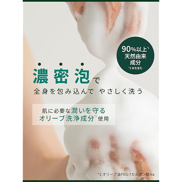 90%(*1)以上天然由来成分。たっぷりの泡立ちでやさしく洗う、グリーンとムスクが香るボディソープ。