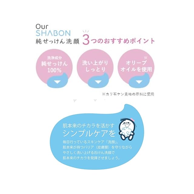 適度な洗浄力が、肌本来が持つバリアを守りながら、優しく洗い上げます。 肌に足りないものを与える、ではなく、肌本来の力を充分に発揮させることこそが、 シャボン玉石けんが考えるスキンケアです。
