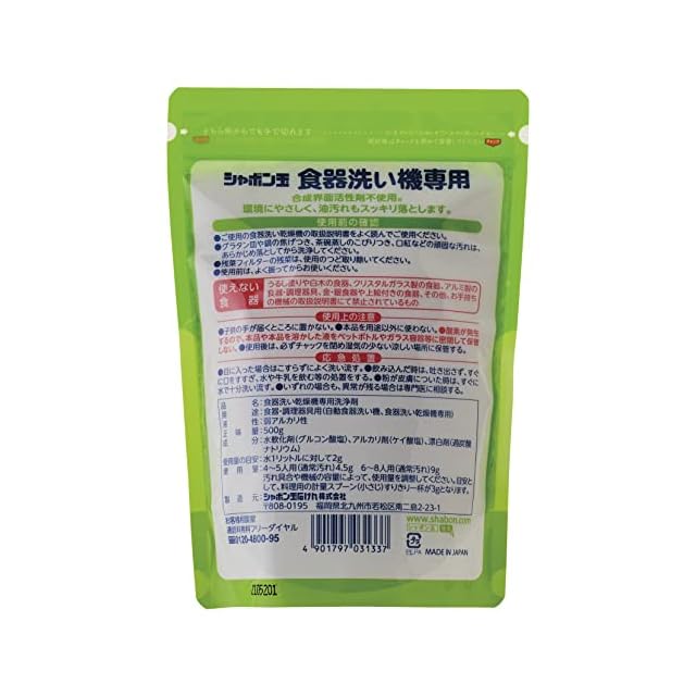 商品名:シャボン玉石けん シャボン玉 食器洗い機専用 500g 油汚れスッキリ 合成洗剤不使用 過炭酸ナトリウム