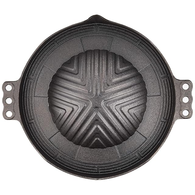 このイシガキのジンギスカン鍋は、鉄鋳物で作られた高品質な製品です。直径31.75cm、奥行29.5cm、高さ4.5cmのサイズで、焼肉やジンギスカンなどの料理に最適です。鋳鉄製の取り扱い易いハンドルと、食器洗い機に対応したデザインは、便利さを実現しています。中国製で、パッケージ重量は2.64kgです。
