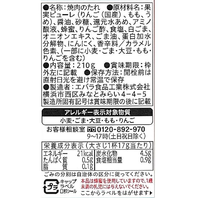 商品名:[ エバラ ] 黄金の味 甘口 210g ×4本( 焼肉のタレ 焼き肉のタレ 焼肉 タレ )