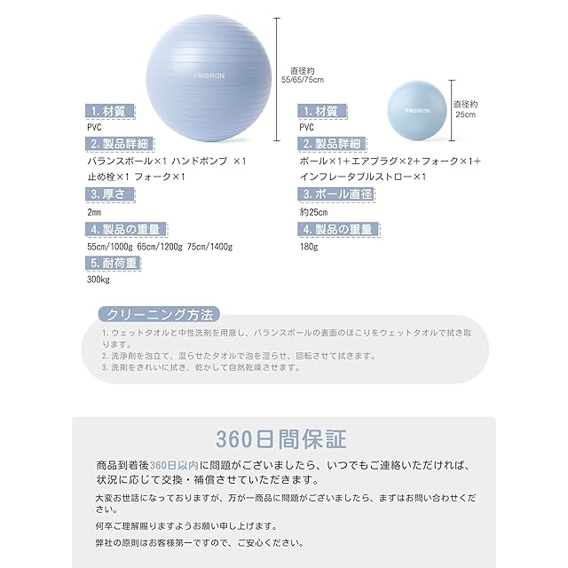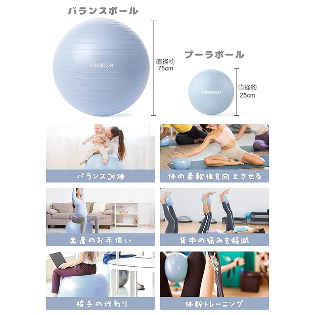 商品名:PROIRON バランスボール ばらんすぼーる 75cm ピラティスボール25cm 2点セット