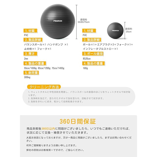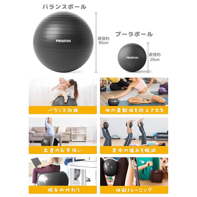 商品名:PROIRON バランスボール ばらんすぼーる 65cm ピラティスボール25cm 2点セット