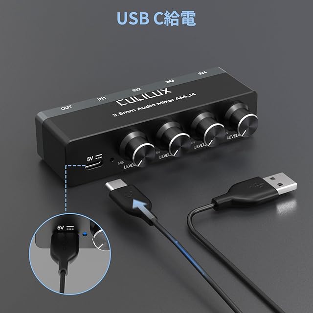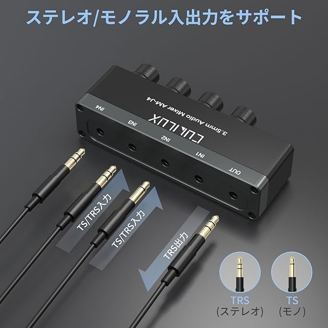 商品名:Cubilux 3.5mm オーディオ ミキサー、4ウェイ ステレオ/モノAUX ミキサー、超低ノイズ ミニ ライン、独立音量調整