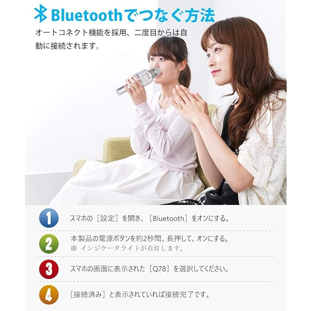 ♫【有線も無線も両方使える】付属のオーディオケーブルによってパソコンやスマホと接続するだけでカラオケが楽しめます。また、ワイヤレスマイクはBluetooth 経由でスマートフォン(IOS &Android)やタブレットが接続可能、一度ペアリングしてから、1秒で簡単に自動的に接続できます。場合に応じて使い分けができるので、大変便利です。