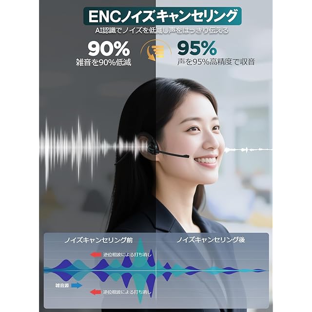 【通話特化マイク搭載&ENCノイズキャンセリング】従来のBluetoothヘッドセットによくあるノイズ問題を改善し、相手にクリアな音声を届けます。音声の遅延率が圧倒的に低く抑えられており、周囲の騒音も優れたノイズキャンセリングでカット。落ちやすいという弱点も改善され、Web会議やミーティングなどさまざまなシーンで大活躍します。