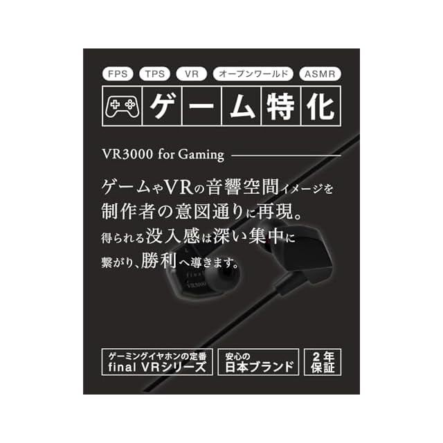 final VR3000 for Gaming Matte Black・有線ゲーミング イヤホン・バイノーラル3Dサラウンド・マイク付き 【ゲーム/VR/バイノーラル/ASMR / 360オーディー推奨】