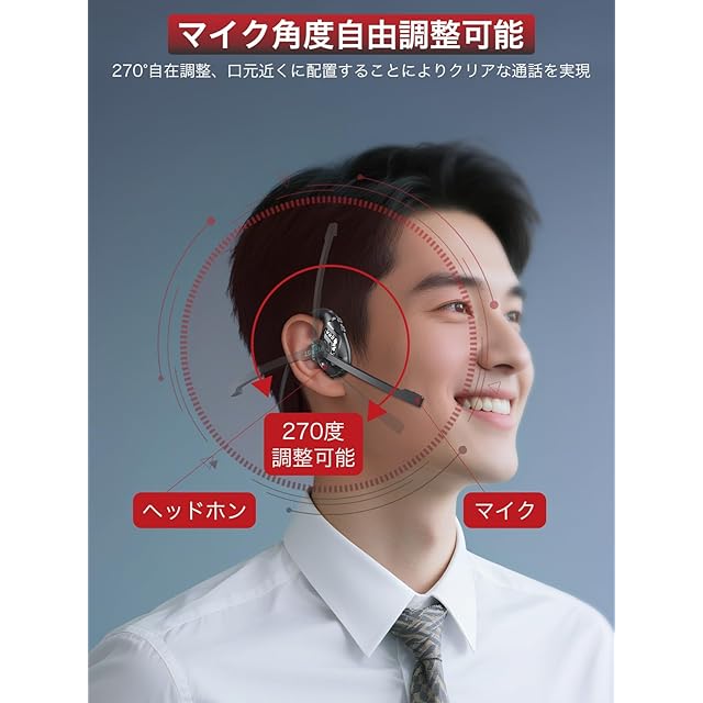 【270°角度調整可能マイク・よりクリア通話を実現】「話す姿勢に合わせてマイク最適化」—これが、プロが求める通話品質の新基準です。ビジネスチャットから重要なクライアント通話まで、あらゆるコミュニケーションをクリアにサポートします。デスクワーク時:マイクを口元へピント調整→声をクリアに収音・移動中屋外:マイクを上向きに→風切り音を軽減会議室での使用:マイクを横方向へ→周囲の声をバランスよく拾う資料を見ながらの通話:マイクを下向きに→紙のめくり音を最小限に