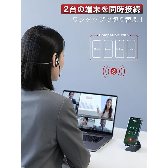 【連続通話时间11小时&Bluetooth 5.3】「朝から晩まで切れない通話」を可能にする、ビジネスプロフェッショナルのための耐久性能。移動中の商談やリモートワークの長時間会議にも、安心してご利用いただけます。最新のBluetooth 5.3技術で、従来比で約40%の電力効率向上を達成します。驚異の11時間連続通話を実現。長時間会議や一日中の外出時でも、充電の心配なく使い続けられます。
