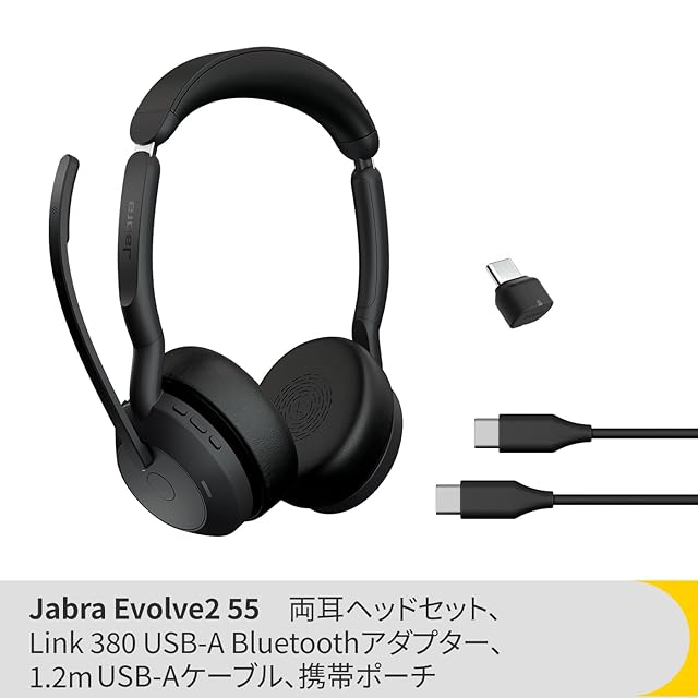 商品名:Jabra Evolve2 55 Link380c UC Stereo 両耳 ワイヤレス ヘッドセット ノイズキャンセリングマイク搭載 USB-C 最長18時間バッテリー持続 Teams/Zoom利用可能 リモート 会議