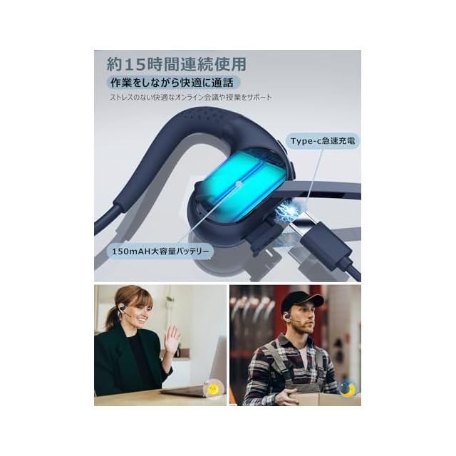 【Type-C急速充電/幅広い交換性】Tpye-C急速充電、150mAH大容量バッテリーで作業をしながら快適に通話、約15時間連続で使用できます。ストレスのない快適なオンライン会議や授業などをサポートします。幅広い交換性でSony Xpeira/Apple IOS/Android/Windows/MacOS/HUAWEI/Nexus/Asus/Galaxy/Auガラケー/OPPO/docomo系などのbluetooth搭載デバイスに対応します。弊社商品はすべて一年付、万がー製品に初期不良があった場合、迅速に交換もしくは返品/返金の対応を承らせていただきます。また、こ不明な点やお気付きの点がごぎいましたら、お気軽に「アカウントサービス」>「注文履歴」>「販売元」>「質問する」までご連絡、ご相談ください。【ご注意:本製品をご利用するには、別途ACアタブターをご購入が必要です。必ずPSEマークの取得した正規メーカー品をご購入ください。また、充電中のご利用は禁止です。】