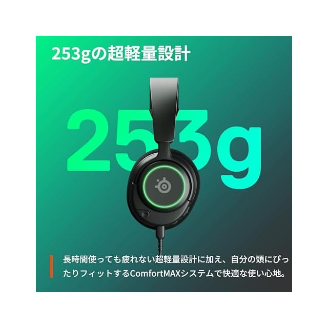 商品名:SteelSeries ゲーミングヘッドセット ヘッドホン Arctis Nova 3 軽量 有線 密閉型 PC PS5 PS4 Switch 対応 RGBライティング AIノイズキャンセリング 空間オーディオ Hi-Fiサウンド 調整可能 61631 ブラック