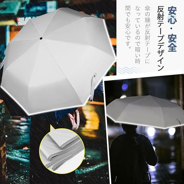【反射トリム安全性up&携帯便利】街灯がない暗い夜道や豪雨の夜にドライバーの視認性を高めて、使用者の安全性も向上できる。グリップ部分のボタンをプッシュするだけで開くジャンプタイプ。ワンタッチで自動的に傘が開くため、急いでいる際に便利です。荷物も持っていても片手でスムーズに操作可能。傘と同じデザインの専用収納袋付き、持ち運びが便利です。