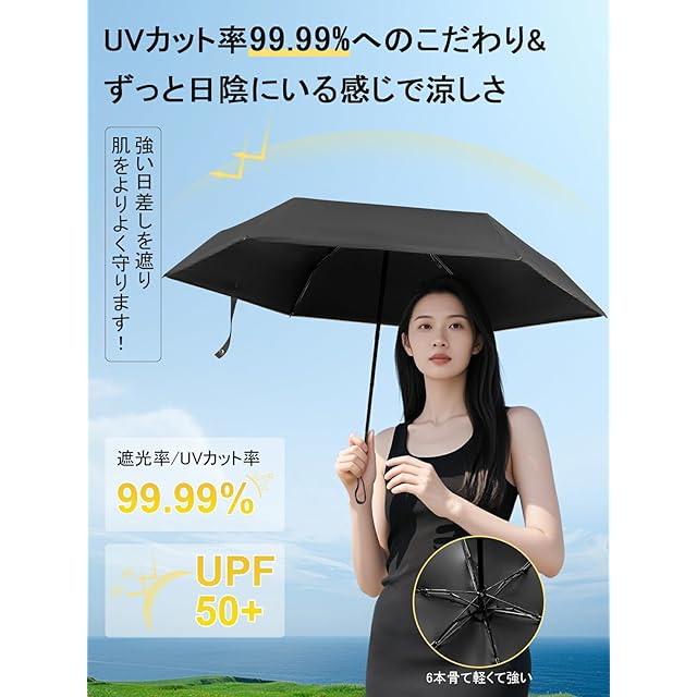 ☔【UVカット100遮光・UPU 50+】JIS認証:日本の厳格な工業基準に適合し、UVカット性能は業界最高水準。UVA/UVBを全波長にわたり遮断し、日よけ効果は普通の日傘をはるかに上回ります。信頼できるJIS認証を取得!国内の第三者機関による検査証明書付きで安心です。この軽量日傘は、超高密度210T防水素材を使用し、優れた防水性能を実現。厚い黒ノリコーティング加工で、UPF50+のプロ級UVカット効果。99%以上の紫外線を遮断し、完全遮光&高効率日焼け防止を実現。日常の通勤からアウトドア活動まで、肌を紫外線からしっかり保護。日焼けや炎症、光老化を防ぎながら、直射日光による暑さや熱中症のリスクも軽減します。☔【超軽量&超コンパクトで携帯に便利】この超軽量日傘は航空機級グラスファイバー骨を使用し、折り畳み時の厚みはわずか4cm、長さ17cm、重量約208g!ポケットにすっと収納可能!バッグのスペースをほとんど取らない超スリム設計で、いつでもどこでも気軽に携帯できます。折りたたんでもかさばらないので、通学・通勤はもちろん、ピクニックや旅行、出張など様々なシーンで活躍。急な夕立にももう慌てません!☔【軽量で耐久性に優れたグラスファイバー&晴雨兼用】グラスファイバー製の傘骨は、スチールや鉄製と比べて錆びず、耐熱性に優れ、強風や豪雨にも強い特徴があります。作られた傘の骨格は折れにくく、頑丈で長持ちします。この折りたたみ傘は晴天時には紫外線や日光を効果的に遮断し、雨天時には雨水をしっかり防ぎ、一年中使用可能です。雨季や紫外線対策には欠かせない優れたアイテムです!☔【撥水性抜群&男女兼用日傘】先進的なPUコーティング技術を採用しており、雨水が触れるとすぐに滑り落ち、浸透せず跡も残りません。長期間使用しても爽やかな状態を保ち、軽く振るだけで水分が落ち、拭き取りの手間がいりません。緻密なステッチ+シーリング加工により、豪雨時でも雨水の浸入を効果的にブロックし、内部を乾いた状態に保ちます。この日傘はシンプルなデザインで無地仕様となっており、性別を問わず、あらゆるシーンやスタイルに合わせてお使いいただけます。☔【撥水性抜群&男女兼用日傘】先進的なPUコーティング技術を採用しており、雨水が触れるとすぐに滑り落ち、浸透せず跡も残りません。長期間使用しても爽やかな状態を保ち、軽く振るだけで水分が落ち、拭き取りの手間がいりません。緻密なステッチ+シーリング加工により、豪雨時でも雨水の浸入を効果的にブロックし、内部を乾いた状態に保ちます。この日傘はシンプルなデザインで無地仕様となっており、性別を問わず、あらゆるシーンやスタイルに合わせてお使いいただけます。