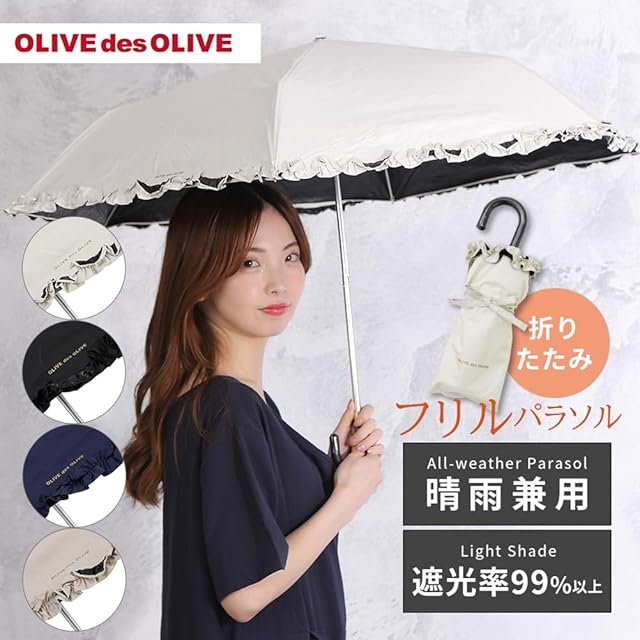 小川(Ogawa) 日傘 折りたたみ傘 OLIVE des OLIVE レディース フリル ネイビー 晴雨兼用 完全遮光 UV99.9%カット 遮熱 70992