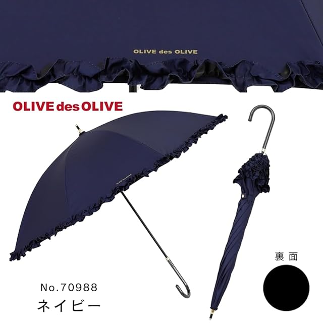 小川(Ogawa) 日傘 OLIVE des OLIVE レディース フリル ネイビー 晴雨兼用 完全遮光 UV99.9%カット 遮熱 70988