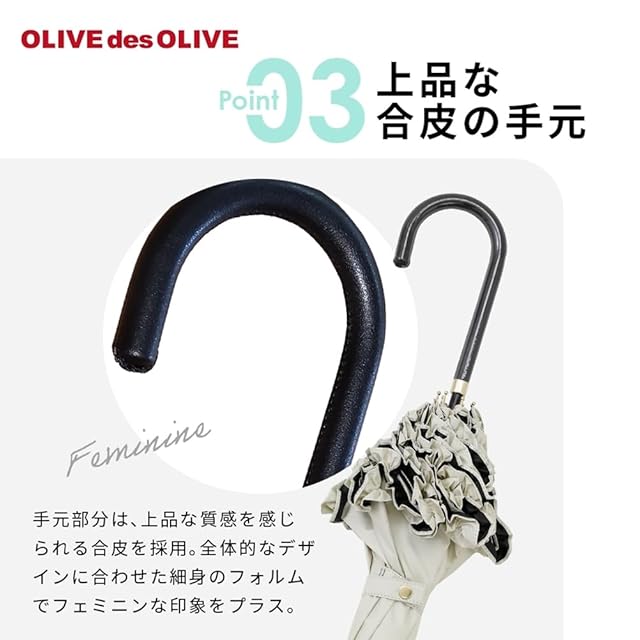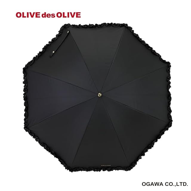 小川(Ogawa) 日傘 OLIVE des OLIVE レディース フリル ブラック 晴雨兼用 完全遮光 UV99.9%カット 遮熱 70985