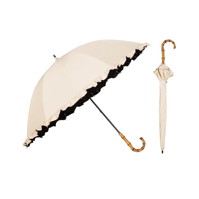 Wpc. 最強の日傘 UVO(ウーボ)長傘/12K フリル ベージュ《遮光率&UVカット率100%/UPF50+/遮熱/晴雨兼用》 親骨55cm レディース 女性 バンブー 持ち手 おしゃれ 可愛い 丈夫 大人可愛い カジュアル UVO12K-24