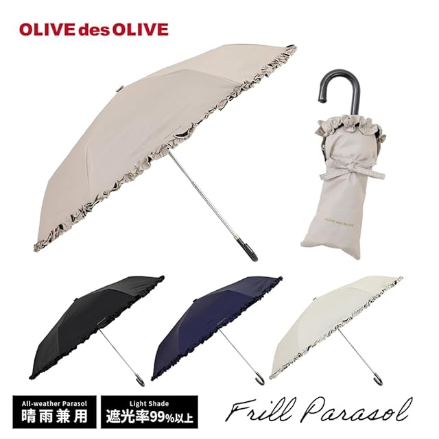 小川(Ogawa) 日傘 折りたたみ傘 OLIVE des OLIVE レディース フリル ホワイト 晴雨兼用 完全遮光 UV99.9%カット 遮熱 70990