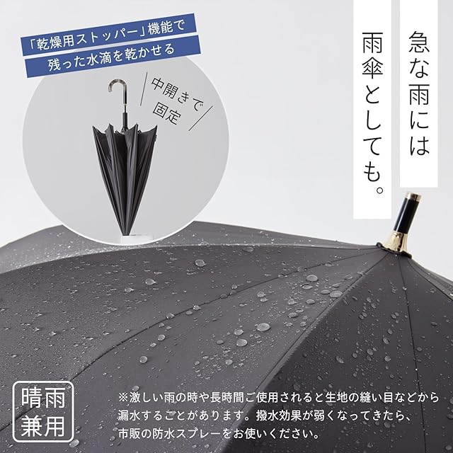 【中開きで固定】中開きの状態で固定して乾燥できるので、傘に残った水滴を乾かせます。ファッションに合わせやすい優しい色合いのラインナップです。