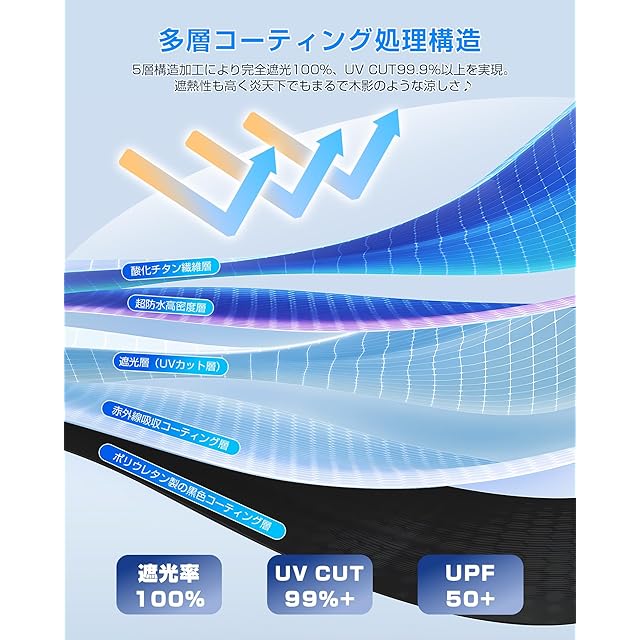 【日傘】2025最新開発された日傘は、独自開発の多層特殊生地を採用し、完全遮光100%で光をカットします。日焼けは、紫外線が皮膚に作用し、炎症を引き起こして赤くなり、その後黒く変色することで起こります。弊店の日傘は、裏面には二層のブラックコーティングが施されており、地面からの反射光も吸収するため、紫外線を完全に防ぎ、日焼けを防止します。ますます暑くなる夏の日にあなたの大切な肌を守ります。