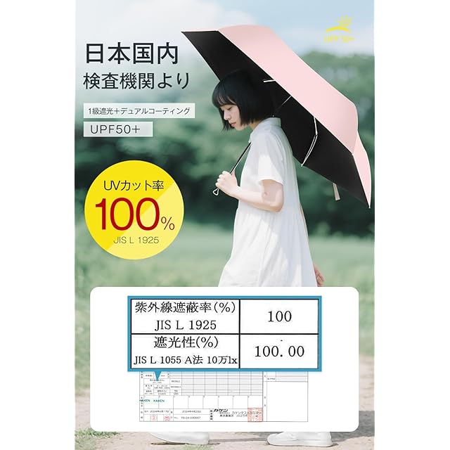 ☂【UVカット 完全遮光傘】JIS規格に基づく厳格なテストをクリアした完全遮光&100%UVカットを実現。高密度生地に多層遮光コーティングにより、強い日差しを遮り、紫外線を100%ブロック、光透過率0、UPF50+の日傘で、大切なお肌を守ります。熱線となる太陽光線をカットするため、ジリジリ日差しの中を歩いても、日陰ができたみたいに涼しく保ち、炎天下でも紫外線を恐れません。真夏を乗り切る日焼け対策・暑さ対策グッズに最適です。
