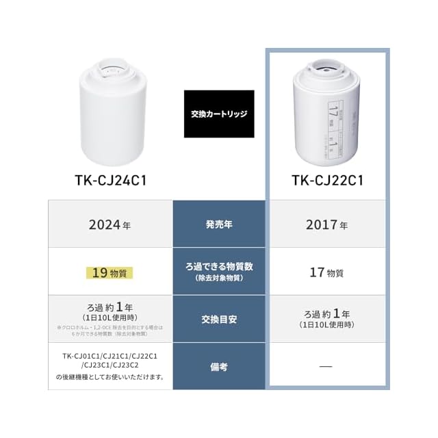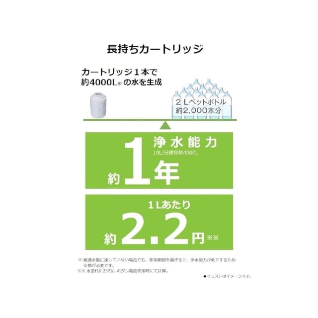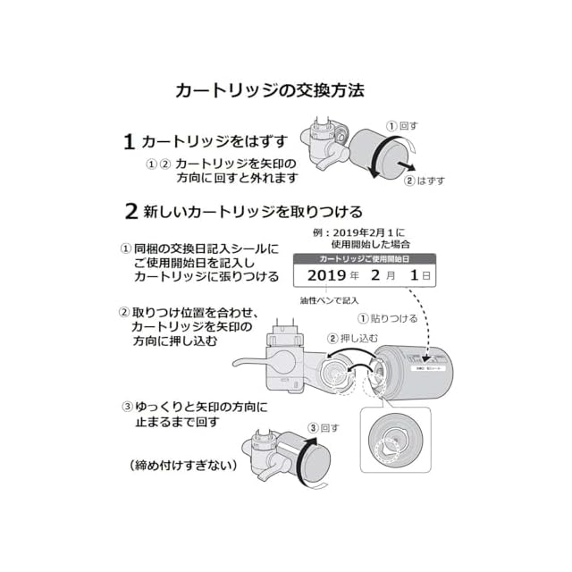 カートリッジの交換時期の目安 約1年(1日10L使用時)