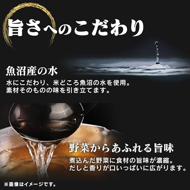 水までこだわっています。新鮮な野菜、魚沼産の水を使用。米どころの水は、素材そのものの味を引き立てます。