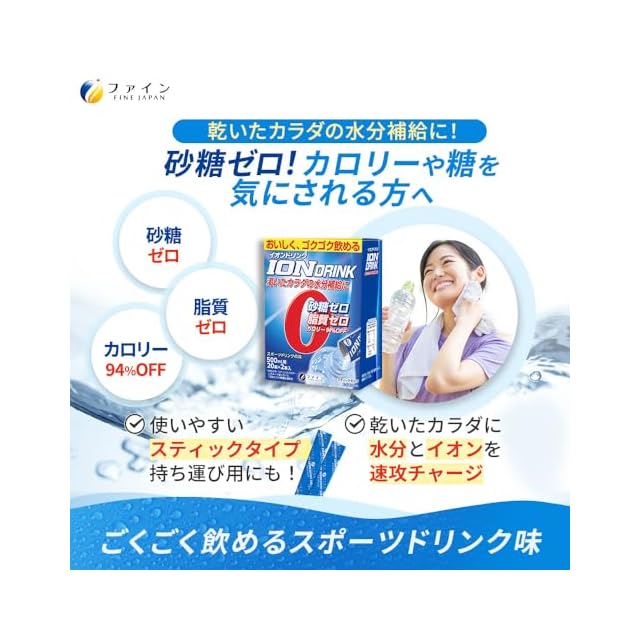 商品名:ファイン(FINE JAPAN) スポーツドリンク イオンドリンク スポーツドリンク味 砂糖ゼロ 脂質ゼロ 国内生産 22包入×3個セット
