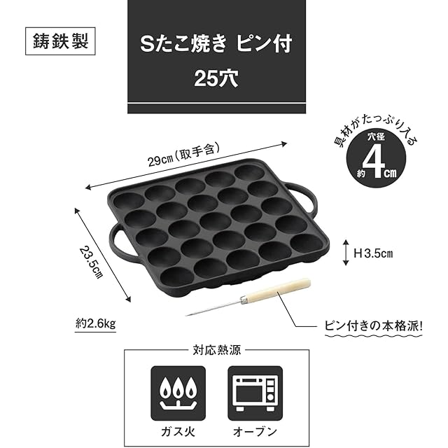 商品名:池永鉄工 たこ焼き器 25穴 鉄鋳物 プレート ピン付き