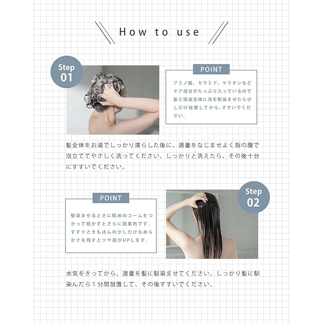 ✨【高保湿でしっとりツヤ髪】アミノ酸やセラミドなどの保湿成分が髪に潤いを与え、乾燥からしっかりガード。髪の内部まで深く浸透し、しっとりとしたツヤ髪を実現します。柔らかくまとまりやすい髪に仕上げます。
