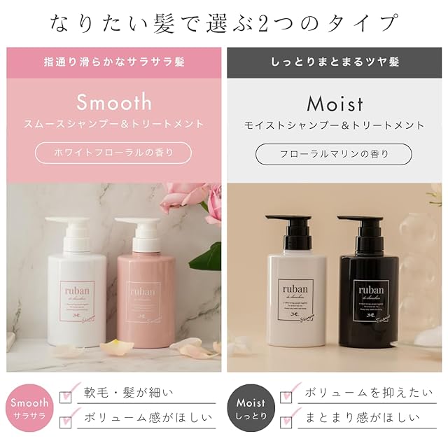 ruban シャンプー トリートメント セット 美容室専売品 【トリプルシルクとクレイ配合でさらさらシルク髪へ】スムース400mlセット