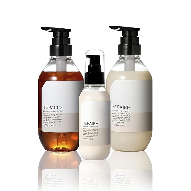 REPAIRM シャンプー トリートメント へアミルク セット 【ダメージ集中補修×なめらかにまとまり続く×アップルペアーの香り×各390ml+120ml】 (3点セット)
