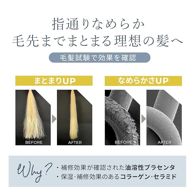 【スキンケアと同じ美容成分配合】地肌を潤す発酵熟成プラセンタ・コラーゲンや髪にツヤを与えるアルガンオイルやハチミツのボタニカルオイル配合。