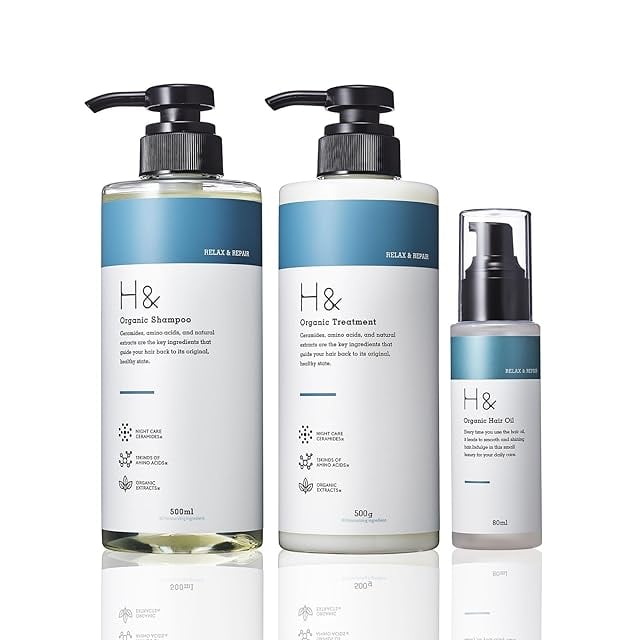 H&アッシュアンド シャンプー トリートメント 美容室専売品 アミノ酸シャンプー【ダメージ集中補修xシャンプートリートメントセット】 (ヘアオイルセット, シトラスフローラル)