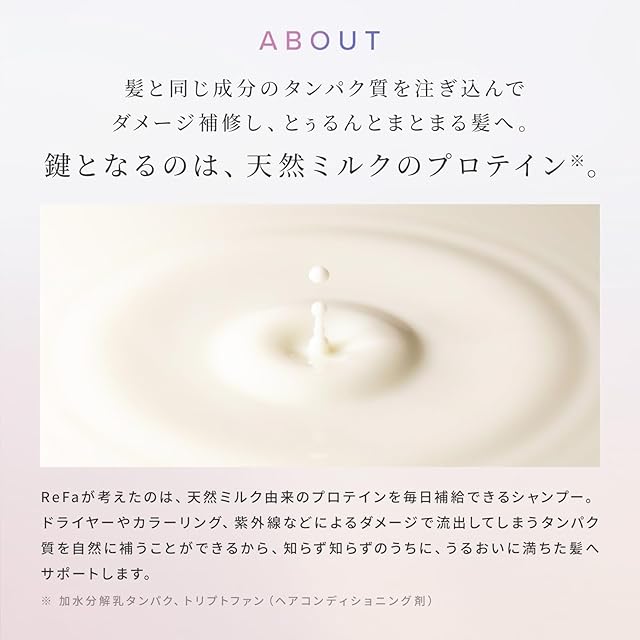 天然ミルク ※1で、 うねりケア。 髪うねり・クセを土台から整え、 とぅるんとまとまる髪へ ※1 加水分解乳タンパク、トリプトファン(ヘアコンディショニング剤)