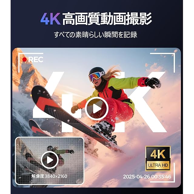 【2100万CMOSセンサー&4K録画& 64MP写真撮影】本カメラはSONY 1/2.4インチCOMSセンサーを採用し、有効画素数を2100万に。4K解像度の録画を可能にするほか、最大64MPの高解像度写真撮影をサポート。強力なアルゴリズムにより、鮮やかな写真が簡単に手に入れる。