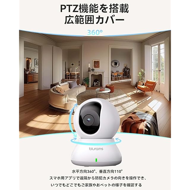 商品名:【2.4と5GhzWiFi対応・300万画素】見守りカメラ 防犯カメラ ペットカメラ blurams モーション/音声/人体検知 自動追尾 PTZカメラ 警報通知 双方向会話 赤外線暗視 遠隔操作 常時録画 みまもりカメラ 監視カメラ ペット/赤ちゃん/高齢者介護カメラ 室内/玄関/店用 3年 日本語取扱説明書