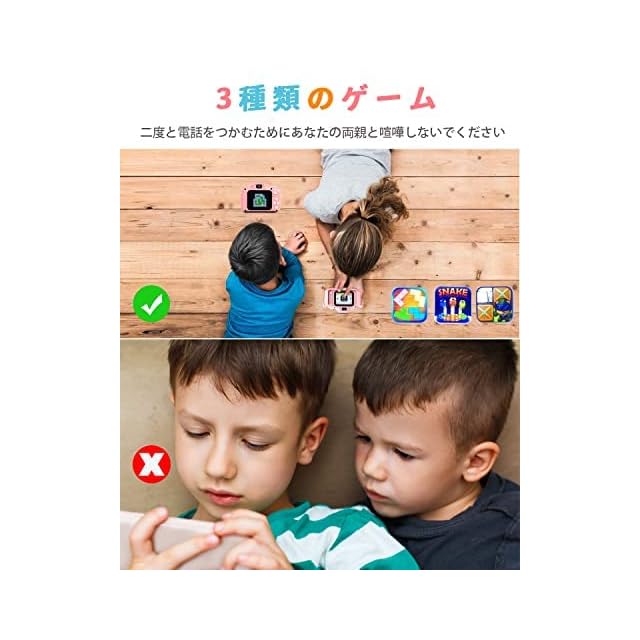 【前後4000万画素・2.0インチIPS画面】2.0インチIPSディスプレイで、子供の手によりデザインし、落ちにくいです。前後4000万画素カメラ付き、写真解像度7344X5504、ビデオ解像度1920X1080、1080P HD 画面で、完璧な撮影ができます。フロントとリアのデュアルレンズにより、自分撮りが簡単にできます。ワンタッチのシャッター操作で簡単に成長中の風景を撮れます。子供の誕生日、旅行、入学、パーティーのプレゼント、クリスマス、新年のプレゼントとしてオススメです。