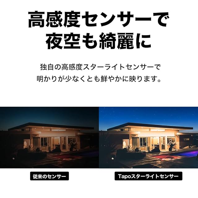 [特徴] 2K QHD高画質屋外用カメラ Tapo C320WS。ライトがついて夜間でもフルカラー撮影。