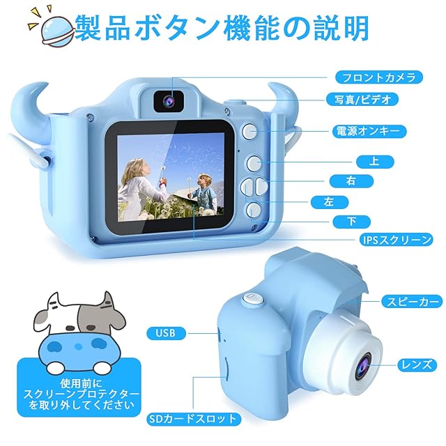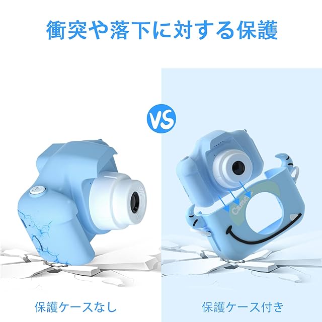 子供用デジタルカメラ 子供用カメラ(ブルーブル)落下防止カメラ用保護ケース フロントレンズとリアレンズを備えたセルフィーカメラ