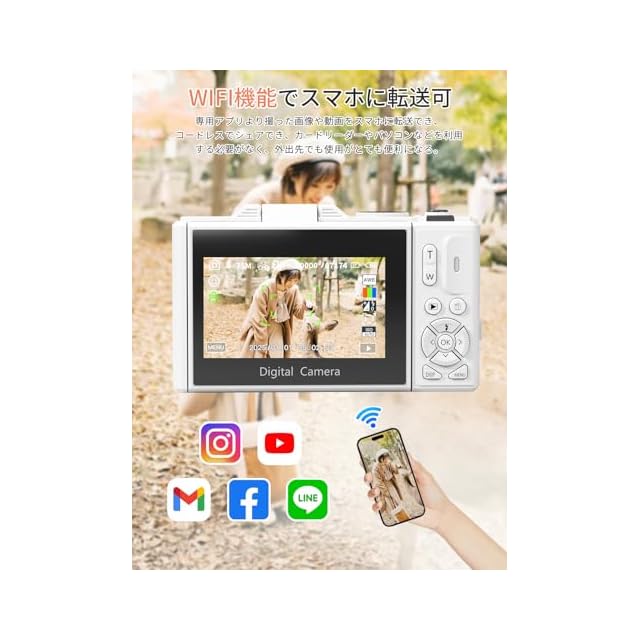 【WIFI転送機能でスマホに送れる】今まで少ない本体にWIFI機能を搭載されておるコンパクトデジタルカメラです。デジカメのWi-Fi機能によって外出先でも簡単にスマホと連携できるため、撮影した画像の転送やSNS投稿などの操作がスムーズにこなせます。専用アプリより撮った画像や動画をスマホに転送でき、コードレスでシェアでき、カードリーダーやパソコンなどを利用する必要がありません。撮影画像の取り扱いにおいて、スマホを手軽に活用できるのがWi-Fi対応デジタルカメラのメリットです。