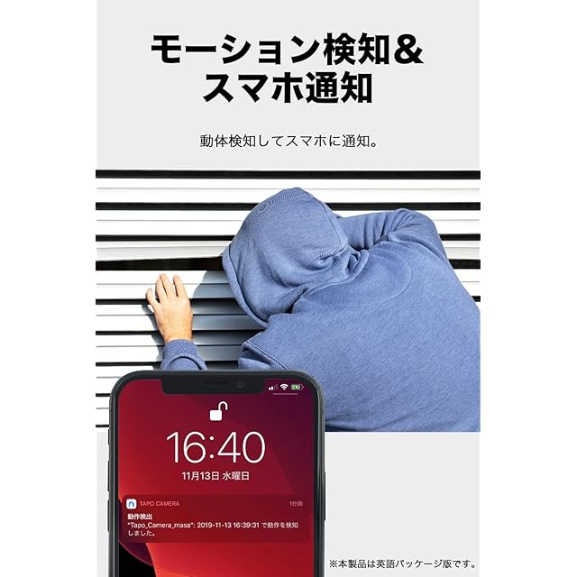 [特徴] ペットにも最適! スマホでかんたんに操作&確認可能な見守りカメラ。動体&音声検知など便利な機能群を搭載。本製品は英語パッケージ版となります。