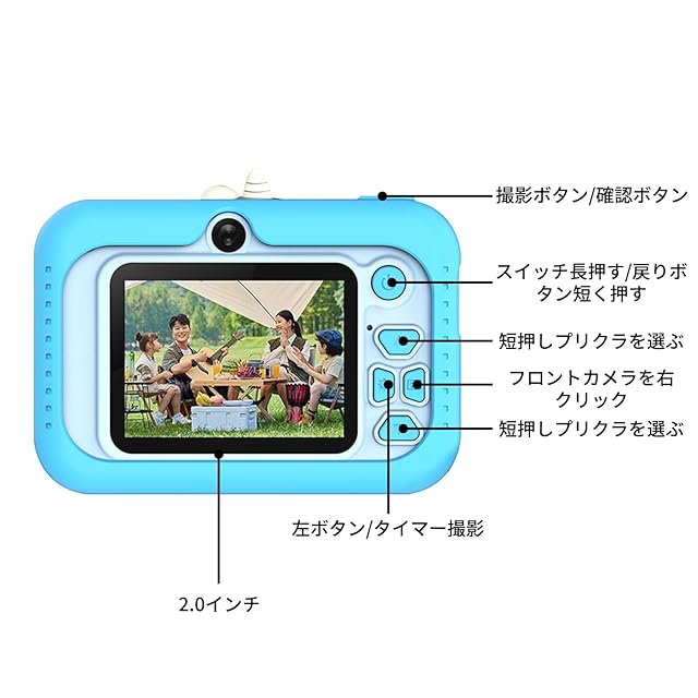 商品名:Tanosimi 子供用カメラ 1080P HD 動画カメラ トイカメラ 2.0インチ キッズカメラ IPS 画面 4倍ズーム USB充電 子供向け デジタルカメラ デュアルレンズ 自撮りカメラ 男の子 女の子 子供の日 6-12歳 子供 おもちゃ 誕生日プレゼンド 32GBメモリーカード付き 日本語説明書付き (ブルー)
