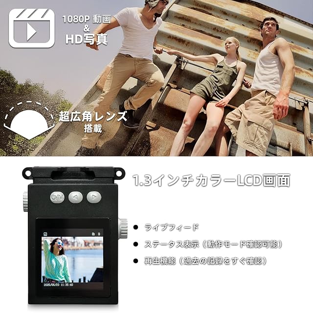 カメラは小さいですが、1.3インチの画面で撮影した写真や動画を簡単に確認できます。