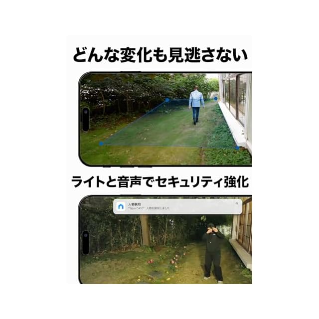 【スマート人物検知】誤検知による不要な通知を低減しながら、撮影範囲内で人物を検知すると、すぐにアプリでお知らせします。