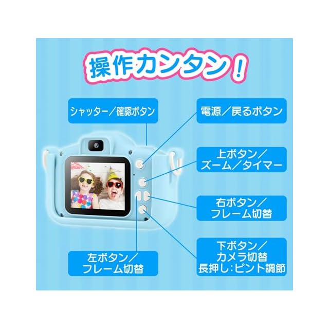 商品名:【 わくわく ハロウィン 新登場】子供用 キッズカメラ トイカメラ1080P HD 動画 32GBメモリーカード付き 2.0インチIPS 画面8倍ズームUSB充電 デュアルレンズ 七五三 子供向け録音自撮りカメラ 男の子 クリスマスおもちゃ 女の子 保護ケース 日本語説明書付き FOROMONE (ブルーのうし)