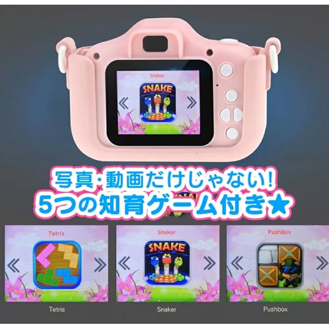 子供用 キッズカメラ トイカメラ1080P HD 動画カメラ 32GBメモリーカード付き2.0インチIPS 画面8倍ズームUSB充電 デュアルレンズ 子供向け録音自撮りカメラデジタルカメラ 男の子 女の子 子供の日 ピンクの猫保護ケースト日本語説明書付き【1年付き】